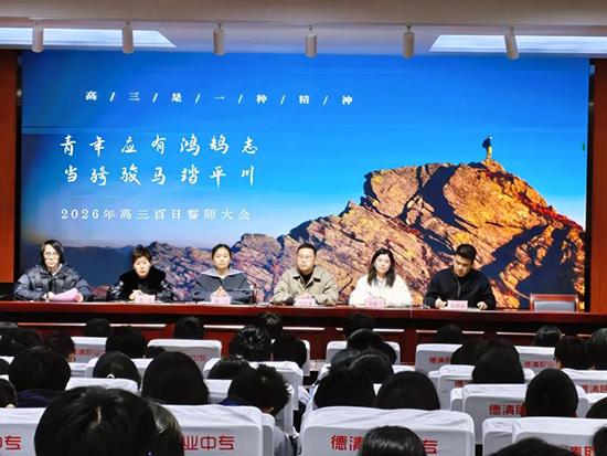 此次高考動(dòng)員大會(huì),是一次凝心聚力的誓師會(huì),是一次科學(xué)精準(zhǔn)的部署會(huì),更是一次鼓舞人心的加油會(huì)。大會(huì)不僅為全體高三師生明確了沖刺目標(biāo)與備考路徑,更點(diǎn)燃了師生們奮勇拼搏的熱情與決心。征程萬(wàn)里風(fēng)正勁,重任千鈞再出發(fā),全體高三師生將以此次大會(huì)為契機(jī),以更堅(jiān)定的信念、更務(wù)實(shí)的行動(dòng)、更飽滿的熱情投入到最后沖刺中,同心同德、全力以赴,力爭(zhēng)在 2026 年高職考中再創(chuàng)佳績(jī),續(xù)寫(xiě)德清職業(yè)中專高考質(zhì)量新篇章!(黃徐宏)