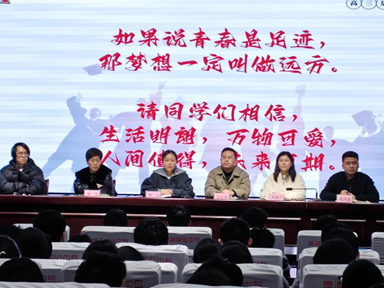 為全面激發(fā)高三學(xué)子備考斗志,凝聚師生沖刺合力,科學(xué)部署最后階段高職考備考工作,3月18日下午,德清職業(yè)中專召開(kāi)2026 屆高三高考動(dòng)員大會(huì)。校黨委委員馬紀(jì)孝、教務(wù)處處長(zhǎng)李云、經(jīng)信系主任姚宏、烹旅系主任宋曉蘭、智造系主任陳鴻叔出席大會(huì),全體高三高考班師生齊聚一堂,以昂揚(yáng)姿態(tài)吹響高考沖刺的沖鋒號(hào)角,共同奔赴這場(chǎng)青春與夢(mèng)想的決戰(zhàn)。