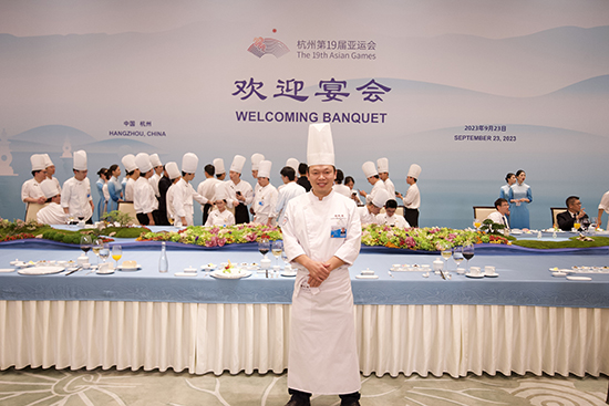 在杭州亞運(yùn)會(huì)歡迎午宴等國宴場(chǎng)合,他帶領(lǐng)浙旅團(tuán)隊(duì)與西子賓館主廚通力合作,歷經(jīng)一百多個(gè)日夜,共同設(shè)計(jì)出融合浙菜特色與國際口味的宴席方案,以美食為橋梁傳遞中國文化,贏得中外嘉賓高度贊譽(yù)。