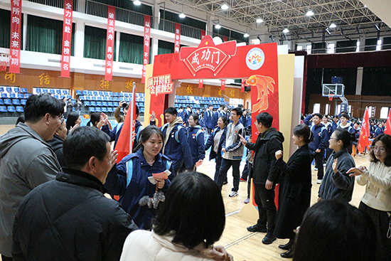大會尾聲,各班在班主任帶領下列隊退場,學子們揮舞班旗、高喊口號,依次穿過“金榜題名門”。校領導與老師們分列門兩側,與學子們擊掌鼓勁,傳遞溫暖與力量。儀式結束后,各班合影留念,學子們紛紛在勵志墻前駐足拍照,定格下這充滿力量的青春瞬間,為高考沖刺之路注入滿滿動力。