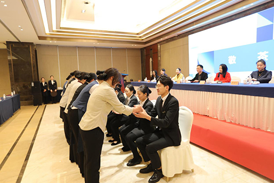 3月20日下午,浙江省湖州藝術(shù)與設(shè)計(jì)學(xué)校旅游服務(wù)與管理專業(yè)現(xiàn)代學(xué)徒制項(xiàng)目拜師儀式在湖州賓館隆重舉行。來(lái)自湖州賓館、浙北大酒店、湖州東吳開(kāi)元名都酒店、湖州喜來(lái)登酒店4個(gè)合作企業(yè)的代表,學(xué)校相關(guān)領(lǐng)導(dǎo)、師生代表共同出席本次儀式,儀式由實(shí)習(xí)實(shí)訓(xùn)處處長(zhǎng)費(fèi)曉旦主持。