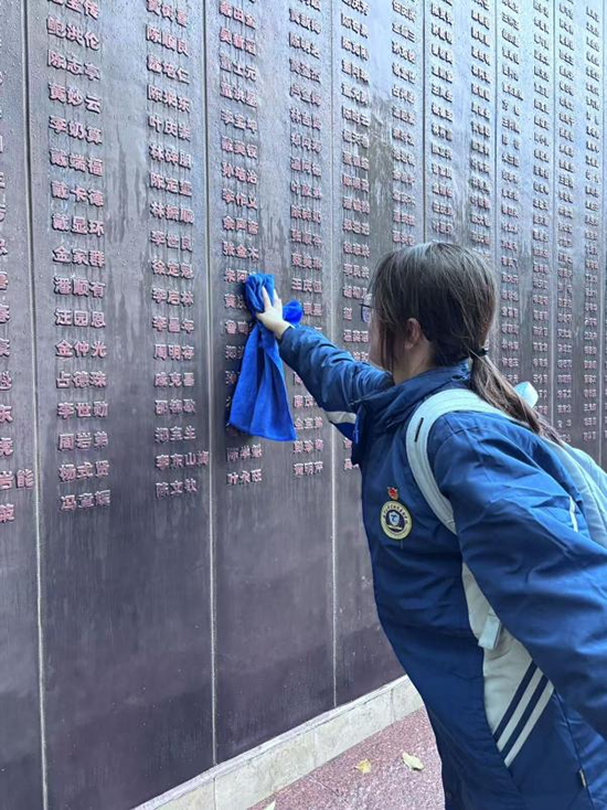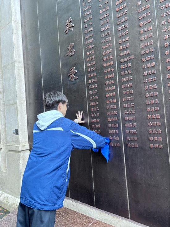 活動最后,同學(xué)們開展了“我為英雄擦墓碑”紅色志愿服務(wù)。大家手持毛巾,認(rèn)真擦拭烈士墓碑,清理周圍環(huán)境,用實際行動表達(dá)對革命先烈的敬仰與感恩。一塊塊被擦拭得干凈整潔的墓碑,承載著新時代青年對英雄的深切緬懷。