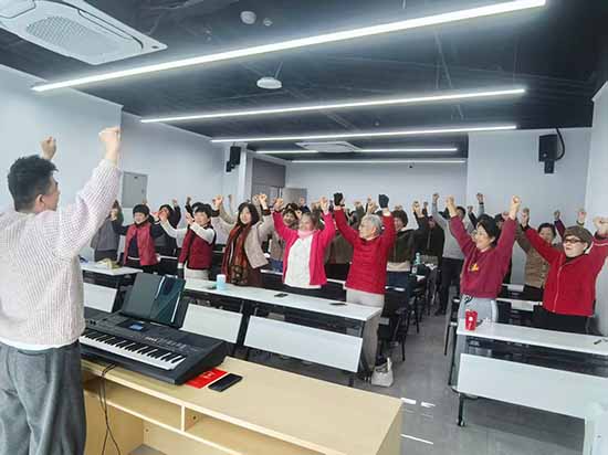 學員的唱歌風采,讓人感受到銀齡學員對美好熱愛與追求。“我一直很喜歡唱歌,但以前沒有機會學習。現在社區開設了了合唱培訓,還有專業老師指導,真是太高興了!”張阿姨興奮地說道。