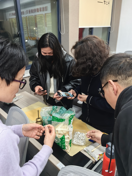 本次培訓內容豐富、形式多樣。學員們首先學習了三十種常用中草藥的辨識方法,從外觀形態到藥性功效,老師們講解生動、深入淺出。隨后,大家動手實踐,學習包藥包、制作艾草錘、調配養生茶包、縫制香囊等。教室里,稱藥的、搗藥的、裝袋的、縫制的各司其職,一派熱火朝天的景象。