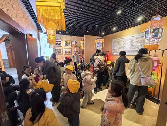3月20日,研學熱度不減。桃園幼兒園北湖園的185名學生接踵而至。面對數量眾多的小訪客,學校非遺教學團隊精心設計了參觀路線與互動環節,確保每一位孩子都能在安全有序的環境中,沉浸式體驗燈彩藝術的獨特韻味。