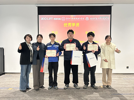 儀式現場進行了培訓成果的展示,以及培訓優秀學員的表彰。陸樂作為學生代表在儀式上發言,表達接受“中高企一體化”育人的感受:“在學校的學習中,我們更多接觸的是理論知識、基礎原理,是對專業的初步認知和框架搭建,而來到西奧公司參與實操培訓,才真正感受到理論與實踐結合的重要性。”學校的課堂教會我們“是什么”,而公司的培訓教會我們“怎么做”“如何安全地做”。這里沒有空洞的理論,只有實打實的部件原理講解、作業安全實操和規范流程,每一個操作細節、每一條安全準則,都關系到設備運行與人身安全,讓我們明白電梯行業從業者肩上的責任與擔當。”他表示,這次企業的培訓是對課堂學習成果的肯定,更是踏入電梯行業、開啟職業之路的重要起點,在今后的公司實習中,將在企業師傅的攜帶下,不斷業務精進,用專業能力為電梯行業的安全運行和發展貢獻自己的力量。