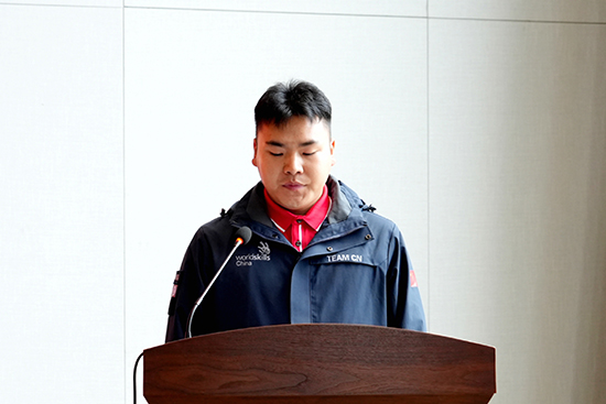 云南交通運輸職業學院選手諸童代表全體選手登臺發言。他表示,在接下來的集訓中,堅決服從專家組和教練組的統一安排,專心投入訓練,精益求精,不斷打磨技能、突破自我,力爭在第 48屆世界技能大賽中奮勇拼搏、爭創佳績,展現新時代技能人才的風采,為國家爭光、為夢想添彩。