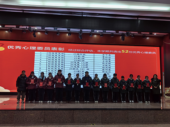 接著為肯定心理委員的辛勤付出,儀式現場對本學期表現突出的52 位優秀心理委員進行表彰。同時,對104篇青春健康講座優秀感悟作者予以鼓勵,希望以榜樣引領,激發更多同學關注心理健康、參與心育工作的熱情。獲獎同學接過榮譽,臉上洋溢著自豪,也堅定了繼續做好心靈守護工作的決心。會上,張文竹老師布置了下學期工作重點:持續做好班級心理晴雨表填寫、參與班級心理畫報比賽、助力心理健康月活動開展,以及參與心理委員外出拓展活動,并對心理委員提出“認真走心、按時準時、規范安全、積極優質”的工作要求。