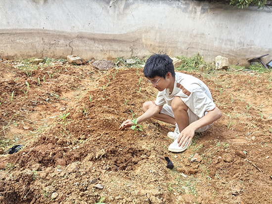 在指導老師何煥永的悉心指導下,社團成員們利用中午和傍晚的休息時間,在校園一角開辟出的菜地里忙碌起來。大家分工合作,有的揮舞著鋤頭翻土整地,有的仔細地撒下蔬菜種子,有的則提著水桶為剛種下的幼苗澆水。雖然汗水浸濕了衣衫,但每個人的臉上都洋溢著興奮與期待的笑容。