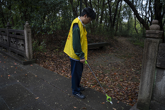 獻花儀式禮成,同學們拿起掃帚、夾子等工具分頭行動。對陵園內的公共區域,尤其是烈士紀念碑四周、步道兩側及花壇角落的雜物、落葉進行了徹底清理。清潔過程中,同學們保持著對逝者的敬畏,動作輕柔舒緩,隊伍整齊有序。一俯一拾之間,是對英烈最質樸的告慰。有同學感慨道:“我們用雙手擦亮的不僅是石碑和臺階,更是心中對祖國的熱愛與忠誠。”這份在勞動中升騰的敬畏之心,正是愛國主義最真實的表達。