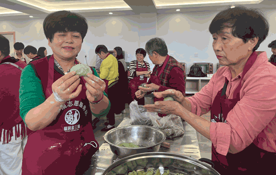 實操環節,20名居民分工協作,兩兩結伴揉面搟皮、舀餡包制。從手法生疏到熟練掌握,一個個碧綠圓潤的艾餃相繼成型。現場歡聲笑語不斷,鄰里交流經驗、分享技巧,氛圍融洽。