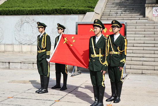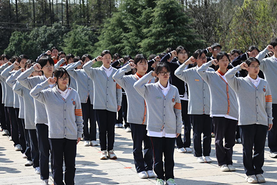 陵園內(nèi)松柏蒼翠,革命烈士紀念碑巍然矗立,現(xiàn)場莊嚴肅穆。活動伊始,全體同學懷著崇敬之心齊聲唱響國歌。