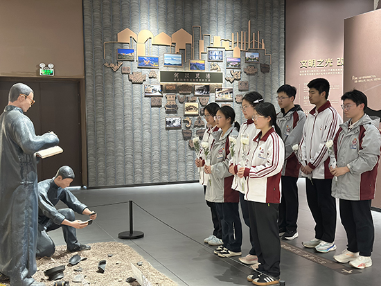 儀式結束后,師生們共同參觀紅色陳列館。在講解員的帶領下,大家認真觀看歷史照片、戰斗遺物和文獻資料,深入了解新四軍在余杭地區的英勇戰斗歷程。一件件實物、一段段故事,生動再現了革命先輩浴血奮戰、不怕犧牲的英雄氣概,讓同學們深受震撼和教育。