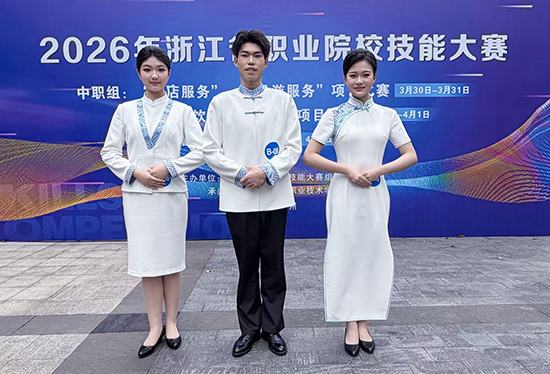 近日,2026年浙江省中等職業(yè)學(xué)校職業(yè)能力大賽(學(xué)生技術(shù)技能類)“酒店服務(wù)”項(xiàng)目比賽在杭州圓滿落幕。經(jīng)過激烈角逐,海鹽職業(yè)教育中心24旅游1班龔奕涵、熊淩菲,25旅游2班司佳怡三位同學(xué)憑借扎實(shí)的專業(yè)技能、規(guī)范的服務(wù)禮儀與默契的團(tuán)隊(duì)協(xié)作,在全省21支參賽隊(duì)伍中脫穎而出,榮獲團(tuán)體三等獎,指導(dǎo)教師徐宋玲、沈燕、張葉里。