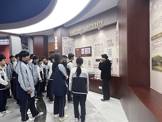 上午,在浙江工貿職業技術學院相關負責人李輝老師的熱情陪同下,柳市職校師生一行首先走進校史館。館內近萬張珍貴照片、百余件歷史實物,以及以“獨峙江濱、江潮涌動、潮起甌江”為脈絡的展區設置,全面展現了學校從1960年溫州動力機廠技工學校起步,六十余載實業報國、砥礪前行的辦學歷程。師生們駐足于大型甌塑作品《跬步之光弦歌悠遠》前,聆聽講解,深刻感受學校“工于匠心,貿通天下”的精神底蘊與改革創新的辦學理念,在追溯歷史中感悟職教初心,明晰職業教育的傳承與發展。