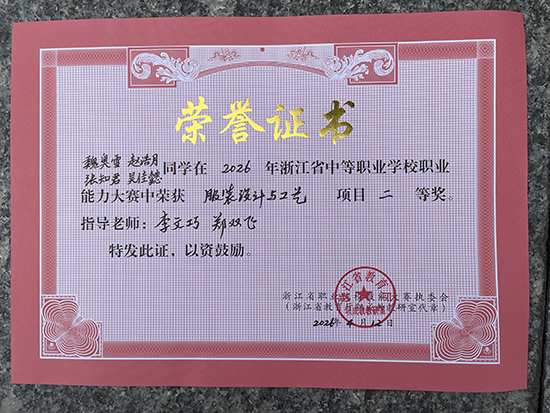 4月12日,2026年浙江省中等職業(yè)學(xué)校職業(yè)能力大賽(學(xué)生技術(shù)技能類(lèi))“服裝設(shè)計(jì)與工藝”項(xiàng)目比賽在浙江紡織服裝職業(yè)技術(shù)學(xué)院圓滿(mǎn)落幕。寧波市北侖職業(yè)高級(jí)中學(xué)服裝專(zhuān)業(yè)代表隊(duì)?wèi){借精彩表現(xiàn),從全省15支精英隊(duì)伍中脫穎而出,榮獲省賽二等獎(jiǎng)。