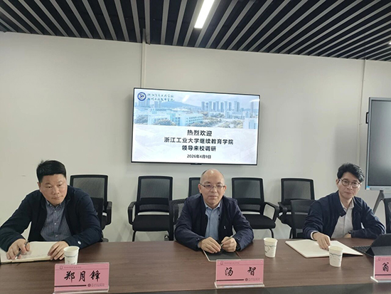 2026年4月9日,浙江工業(yè)大學(xué)繼續(xù)教育學(xué)院副院長湯智、學(xué)歷教育部主管翁曦勉、教學(xué)建設(shè)部主管鄭月鋒一行蒞臨浙江信息工程學(xué)校(湖州工程技師學(xué)院),就浙工大湖州教學(xué)站的建設(shè)發(fā)展、合作拓展及2026年教育部教學(xué)點備案等工作開展調(diào)研座談。浙江信息工程學(xué)校副校長褚劍飛、培訓(xùn)處處長馮玉如、副處長何琦及相關(guān)教師參與交流。