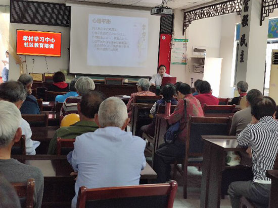 4月14日上午,安吉縣社區教育學院章村學習中心在章村村文化禮堂開展老年心理健康教育講座,特邀章村衛生院沈凌梅醫生主講,48位老年學員到場參與,共學心理調適知識,樂享健康晚年指南。
