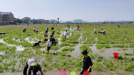 活動啟動后,身著紅馬甲的“五老”志愿者在楓橋鎮(zhèn)關工委業(yè)務副主任胡國生的帶領下,迅速前往田埂路邊、通道出入口等關鍵點位值守。志愿者們耐心引導孩子們有序參與下田“柯魚”體驗,反復提醒大家注意腳下安全,嚴防推搡擁擠、滑倒磕碰等意外情況發(fā)生。面對現(xiàn)場熱鬧緊張的氛圍,“五老”志愿者們一絲不茍、全程值守,目光緊隨孩子們的身影,密切關注活動現(xiàn)場動態(tài)。同時,他們積極協(xié)助組委會清點參與人數(shù),實時掌握孩子們的活動情況,確保每位參與者都在安全看護范圍之內(nèi)。