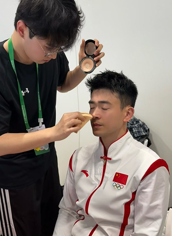 美發與形象設計專業教研組長葉雙雙老師,聯合企業導師阿朵老師、2018 屆優秀畢業生王家駿,帶領“美麗魔法屋”創業工作室團隊承擔開幕式重要嘉賓與部分演員化妝造型工作。團隊尤為榮幸,受邀為奧運冠軍潘展樂、鄭思維量身打造妝容,精準呈現冠軍風采,讓他們在開幕式現場神采奕奕、閃耀亮相。這份來自國家級盛會、面向奧運冠軍的妝造任務,既是對學校專業水準的高度認可,更是師生職業生涯中彌足珍貴的榮耀時刻。