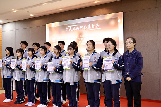 大會進入表彰頒獎環節,主持人依次宣讀各項表彰名單,志愿服務先鋒、志愿領航團支部、行走大運河志愿標兵、志愿服務先進個人獲獎代表依次上臺領獎。一張張榮譽證書,是對他們默默奉獻的最好肯定,現場掌聲不斷,氣氛熱烈而莊重。