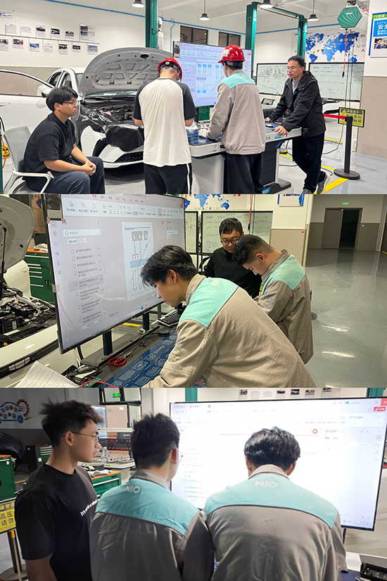 指導老師劉金隆、高峰主動扛起責任,全程深耕備賽一線。他們結合大賽評分標準,逐一對接考核要點,精準梳理考點難點,為兩名選手量身定制個性化訓練方案。從新能源汽車高低壓系統原理的深度解讀、故障診斷思路的邏輯梳理,到電驅動總成拆裝調試的每一個細節規范,兩位老師都耐心指導、反復打磨,手把手糾正操作偏差,點對點破解技術瓶頸。
