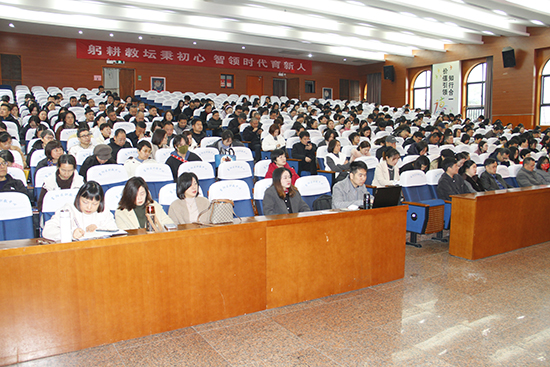 校黨委副書記陳建榮作關于教學線工作專題講話。首先陳建榮副書記對上學期教學工作進行分析總結,他提出新學期要以“教學常規落實、專業調整優化、實干創新提質”為目標,通過“六個結合”強化教學巡查(課堂檢查與教案檢查結合、組團檢查與常規檢查結合等),推行教考分離嚴肅考紀,并加強對3+2班級的質量監控。他還就新增專業(休閑體育、人工智能)、優質專業群建設及開學返校安排作了細致說明。學校副校長劉著程作關于新學期德育線工作專題講話。