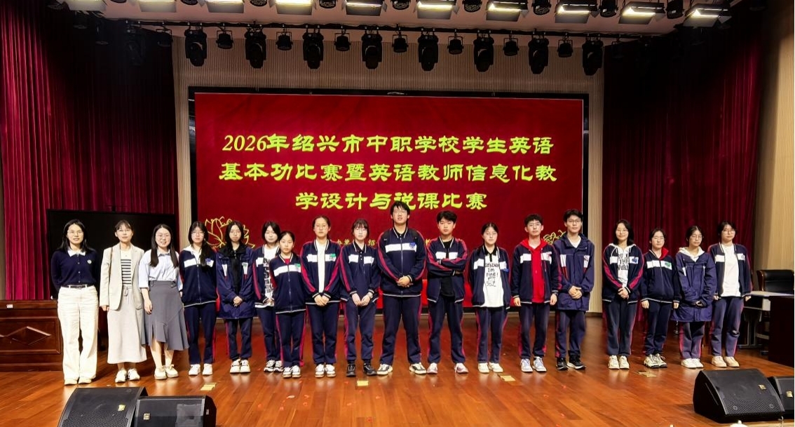 4月16日,2026年紹興市中職學校學生英語基本功比賽暨英語教師信息化教學設計與說課比賽圓滿落幕。上虞區職業中專師生在此次多項賽中表現優異,斬獲多個獎項:呂澤旭老師榮獲教師信息化說課比賽第二名并成功晉級省賽;學生榮獲單項賽一二三等獎各3個,配音項目團體三等獎。