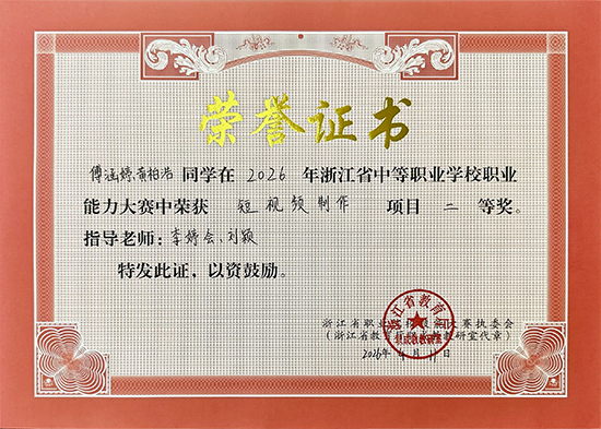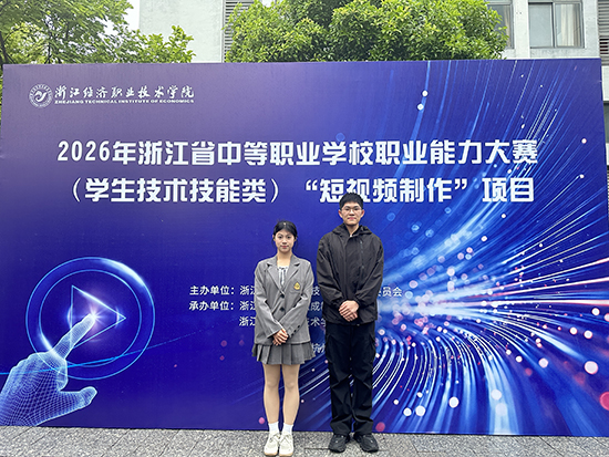 現代商務系:傅涵婷、黃柏浩兩位同學在短視頻賽項中榮獲省二等獎。指導老師:李婷會、劉穎;班主任:陳陽。