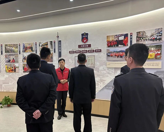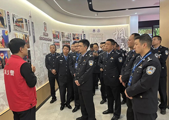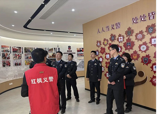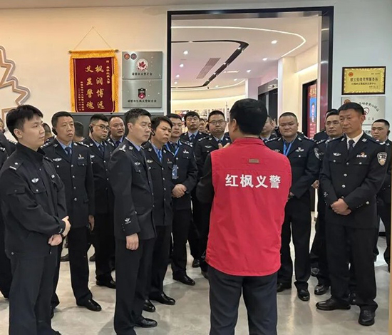 重慶市大足區公安局副局長羅存偉率各派出所負責人一行,以及上海鐵路公安局南京公安處南京南站派出所所長侍亞州帶領民警團隊,先后來到紅楓義警工作站考察調研。考察團實地察看陣地建設、隊伍管理、工作臺賬等情況,詳細了解紅楓義警的發展歷程、組織架構與運行模式。在工作站負責人陳榮周的講解引導下,考察團認真聆聽紅楓義警秉持“崇法尚義、積安向善”宗旨,開展治安巡邏、法治宣傳、矛盾調解、愛心救助等工作的實踐成果,近距離感受這支民間公益力量扎根基層、守護平安的初心與擔當。