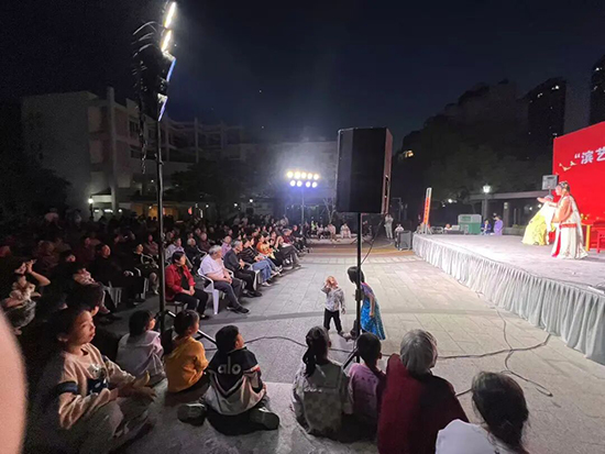 暮色漸濃,春波小區(qū)廣場(chǎng)上早已熱鬧非凡。居民們?cè)缭绨岷眯“宓事渥簧儋Y深戲迷更是專程趕來(lái),翹首以盼這場(chǎng)家門口的文化盛宴。伴隨著悠揚(yáng)的絲竹管弦聲,演出正式拉開帷幕。