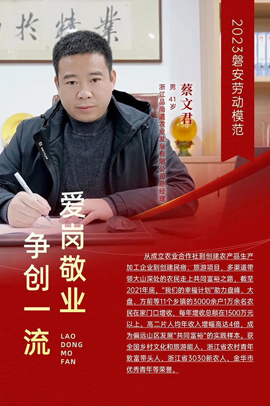 畢業后,蔡文君懷揣著夢想與對家鄉的眷戀,一步步探索屬于自己的奮斗之路。2007年,他回到家鄉投身優質農產品開發,憑借敏銳的市場洞察力和堅韌不拔的毅力,先后在長三角地區開設了10余家磐安名優生態農特產直銷店。2012年春節,他回鄉時看到許多留守老人和低收入農戶“出門無門路,在家缺資金”的窘境,內心深受觸動。同年4月,在磐安縣鄉黨委政府的大力支持下,啟動“我的幸福計劃”,依托于山區優越的生態環境,采用“政府搭橋+公司+合作社+農戶+基地”的模式發展種養殖。
