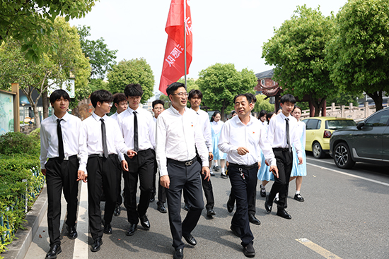 一堂思政課,可以從教室走向田野;一位書記,可以是引領者更是主講人。4月20日,柯橋區職業教育中心黨委書記周國林帶領學校黨員教師、團員學生代表,走進安昌街道大西山村,與村黨委聯合開展“行走的思政課”主題活動。從莊嚴的黨建簽約到田間的“雙書記課堂”,從學生的普法反詐實踐到村民的熱烈掌聲——這堂沒有圍墻的思政課,既有泥土芬芳,更有信仰力量,生動詮釋了學校“黨建帶團建、實踐育新人”的政治擔當。