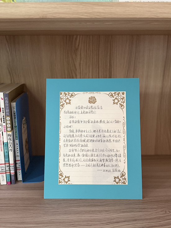 啟動儀式之后,各項主題活動有序展開、層層遞進。在“我的讀書搭子”主題活動中,同學(xué)們以書信為媒,寫下飽含真情的好書推薦信,用文字分享心中最喜愛的書籍,傳遞閱讀的快樂與收獲。一篇篇文筆優(yōu)美、內(nèi)容積極的推薦信經(jīng)過篩選后,在實訓(xùn)樓開放書吧集中展出,成為校園里一道溫暖的書香風景。