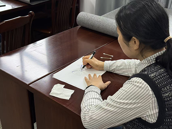 在掌握了基本線條技法后,課程進入趣味實踐環節——繪制蝴蝶結。老師將蝴蝶結的結構分解為流暢的曲線與巧妙的穿插關系,指導學員如何運用剛剛練就的排線技巧,表現出蝴蝶結絲帶的轉折與光影。學員們聚精會神,手中的圓珠筆不再是單純的書寫工具,轉而成為創造美的畫筆。當一個個或簡約或繁復、線條流暢的蝴蝶結躍然紙上時,課堂里充滿了成就感與歡聲笑語。