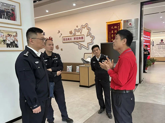考察團一行在紅楓義警工作站負責人陳榮周的陪同下,先后參觀了工作站文化展示區、辦公區等功能區域,認真聽取講解,細致了解紅楓義警的組織架構、發展歷程、日常運行模式及特色工作亮點。陳榮周圍繞展板內容,就群防群治、矛盾調解、平安宣傳、應急聯動等工作開展情況逐一介紹??疾靾F成員認真聆聽、仔細記錄、現場拍照,并翻閱工作臺賬,真切感受紅楓義警扎根基層、服務群眾的初心與堅守。