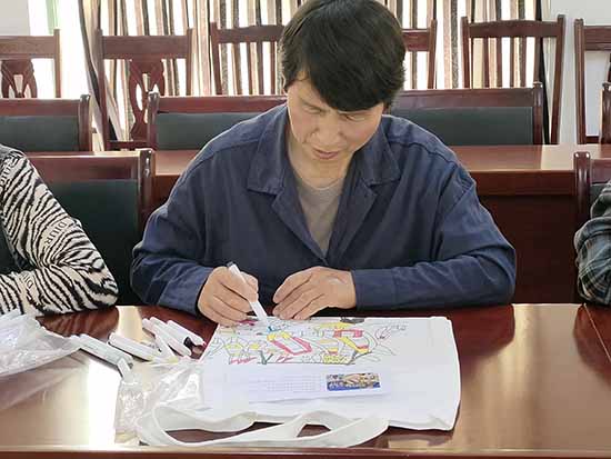 活動中,鄭老師系統梳理漁民畫的歷史淵源與美學特征,從色彩搭配、構圖特點到線條運用進行細致講解與示范,著重闡釋其以鮮明色彩、生動筆觸展現海島風土與漁家生活的藝術特質。學員們認真聆聽、詳實記錄,隨后進入創作環節。海浪翻涌、漁船歸港、燈塔佇立、魚鲞晾曬——村民們以畫筆為媒,將漁家意象逐一呈現于帆布袋之上,盡顯鄉土創意與手工巧思。