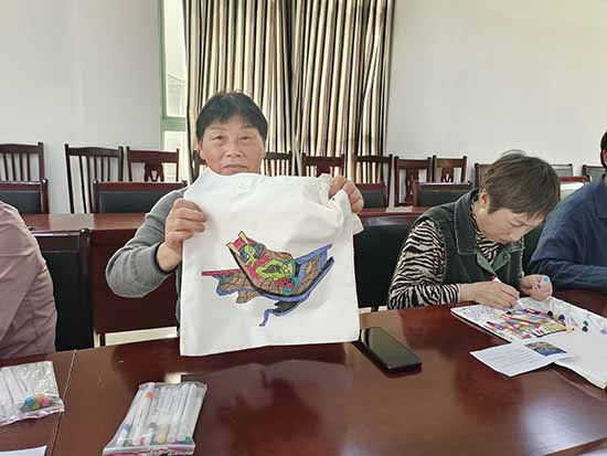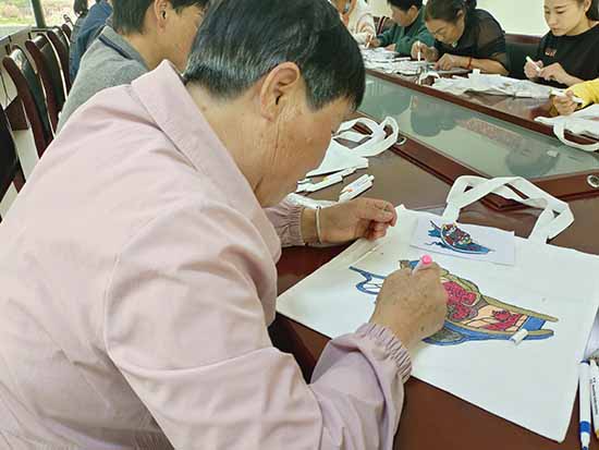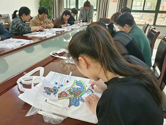 創作現場氣氛融洽,技藝嫻熟的學員率先完成構思精巧之作,進度稍緩者則相互協作、互促共進,于調色勾勒間交流心得,于歡聲笑語中體悟非遺魅力。此次創作的帆布袋兼具實用功能與藝術價值,既承續漁民畫傳統韻味,又契合日常應用場景,使非遺文化以更為貼近生活的方式實現活態傳承。