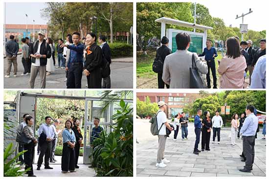 考察團在朱曉明書記的帶領下,先是實地參觀學校智慧操場、園林實訓基地、紅船小院等特色場所,了解海職高在智慧場景建設、實訓基地運營、校園文化培育等方面的創新實踐。