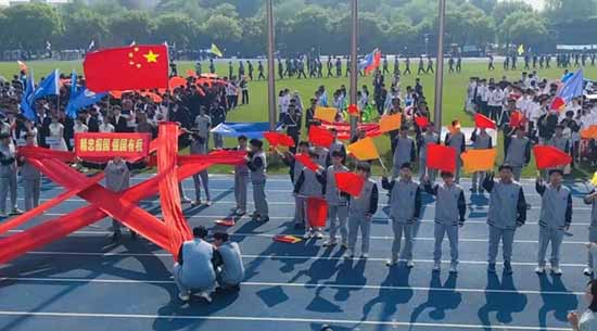 伴隨著《運動員進行曲》的鏗鏘旋律,國旗隊、彩旗隊、鮮花隊率先入場。隨后,95個班級組成的15個德育組方陣步伐整齊、口號嘹亮,依次走過主席臺。青春的笑臉與飄揚的旗幟交相輝映,點燃了全場的熱情。