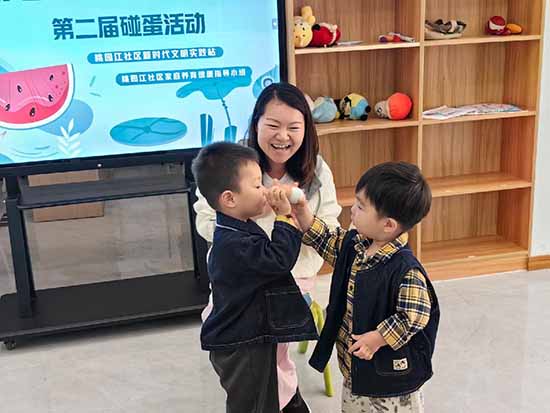 碰蛋游戲將活動氛圍推向高潮,孩子們手持彩蛋兩兩友好比拼,歡笑聲、加油聲縈繞全場,活動還現場評選出“蛋王”,讓大家在民俗互動中體會傳統游戲的樂趣。