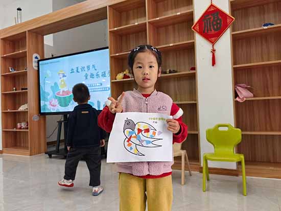 活動中,授課老師用通俗易懂的語言,細致講解立夏節氣由來、時令特點及傳統民俗,帶領幼兒初識傳統節氣文化。手工環節里,孩子們在家長協助下,動手撕貼彩紙、裝飾小燕子手工作品,既鍛煉了手部精細動作與實踐能力,也在創作中感受初夏美好。